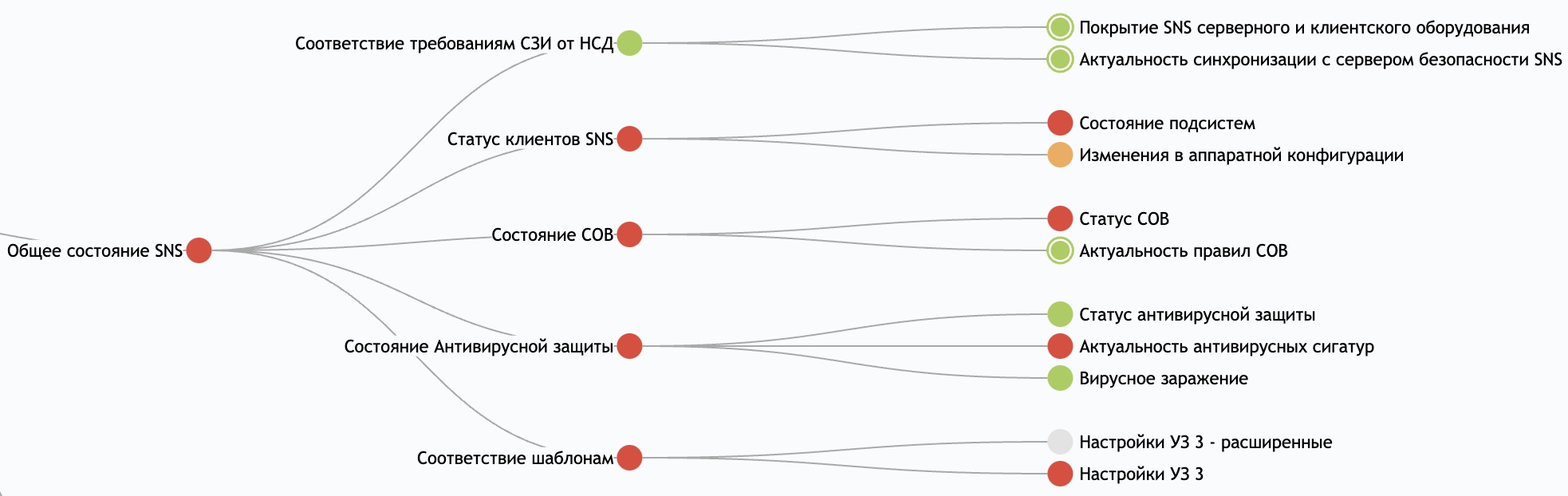 Создавая с помощью визуального конструктора метрики и индикаторы, настраивая взаимосвязи и алгоритмы влияния индикаторов разных уровней появляется возможность отслеживать и визуализировать причинно-следственные связи, например, деградацией клиентского сервиса и неполадками на уровне конкретного компонента инфраструктуры.
