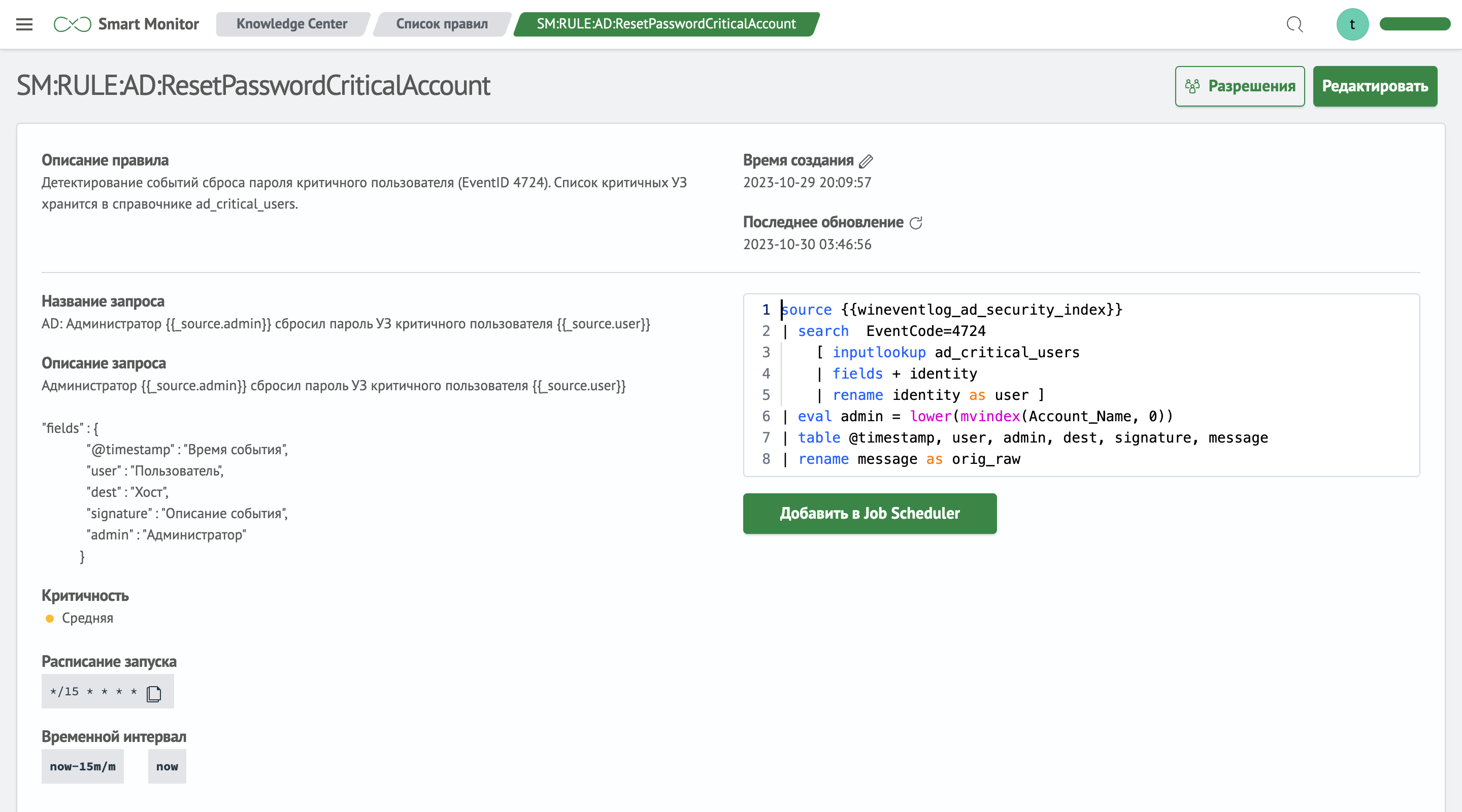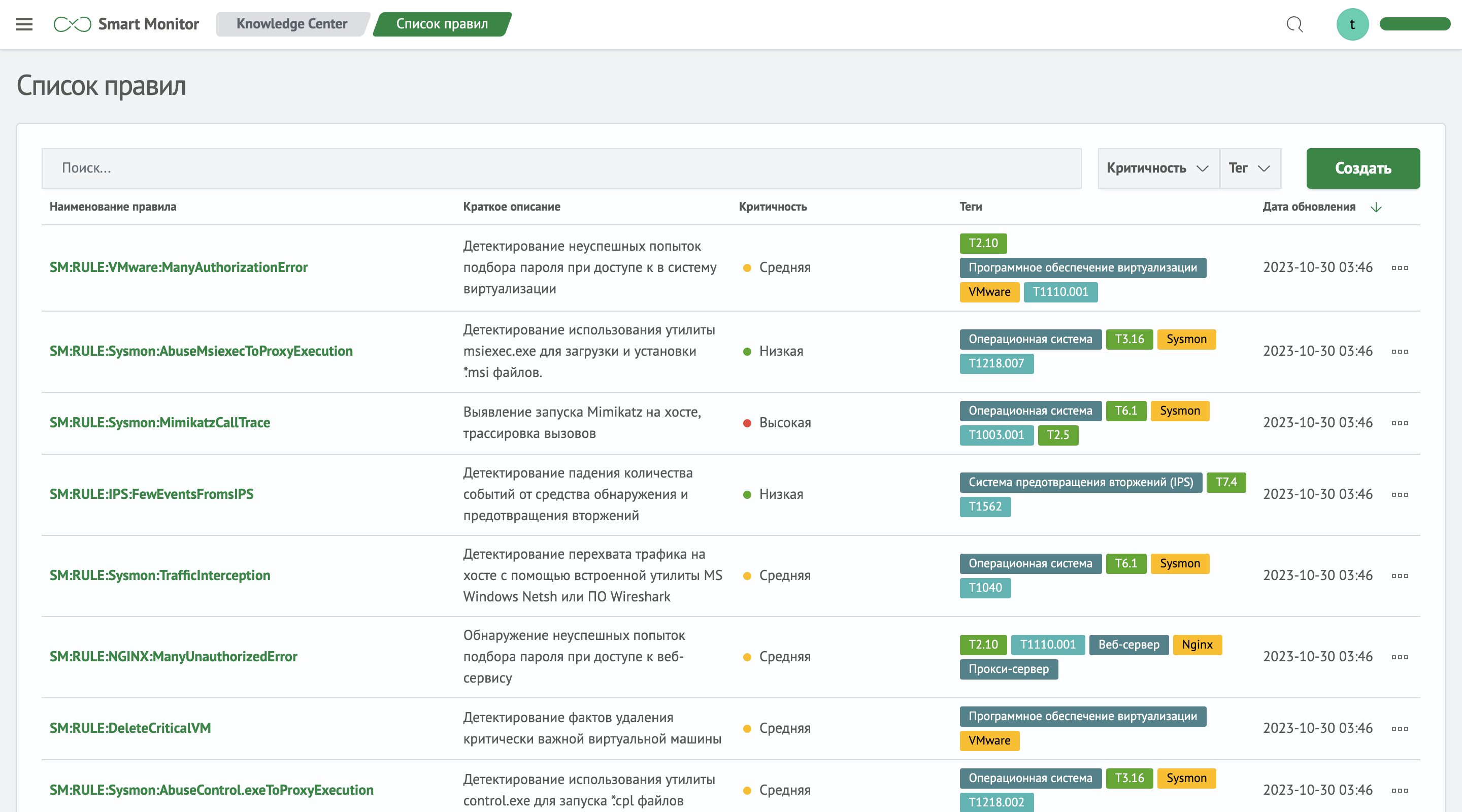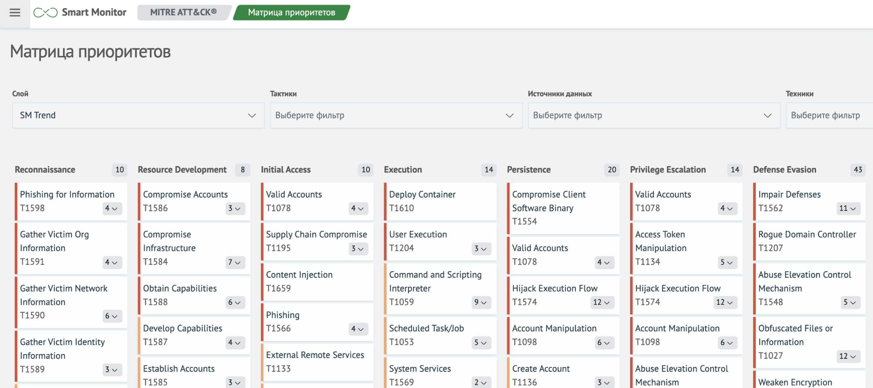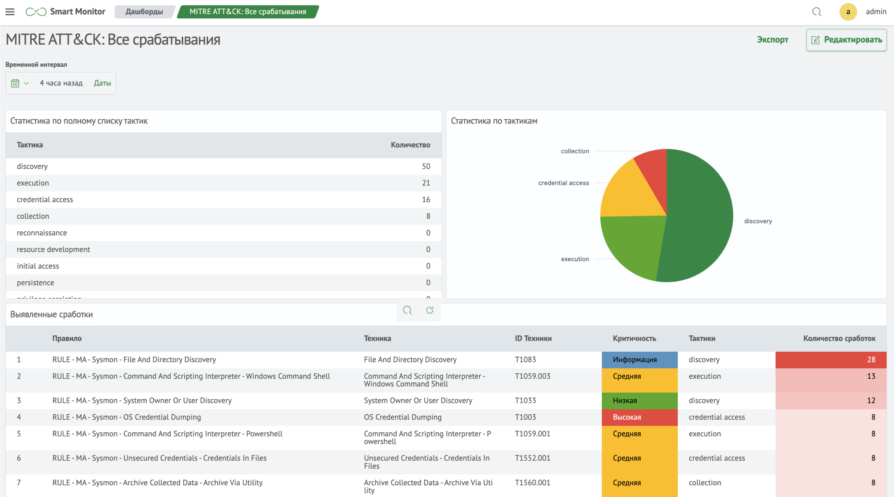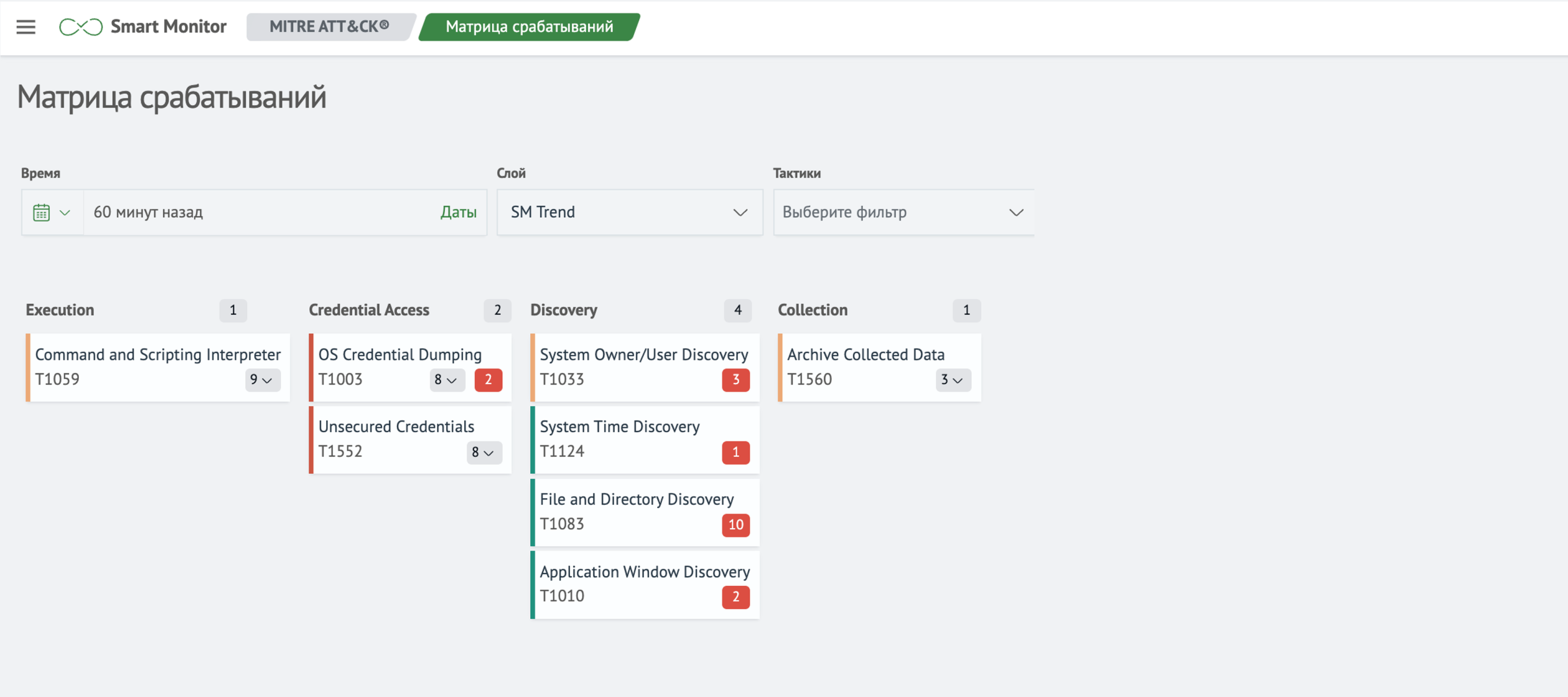 Модуль позволяет применить в защищаемой инфраструктуре различные сценарии использования MITRE ATT&CK: